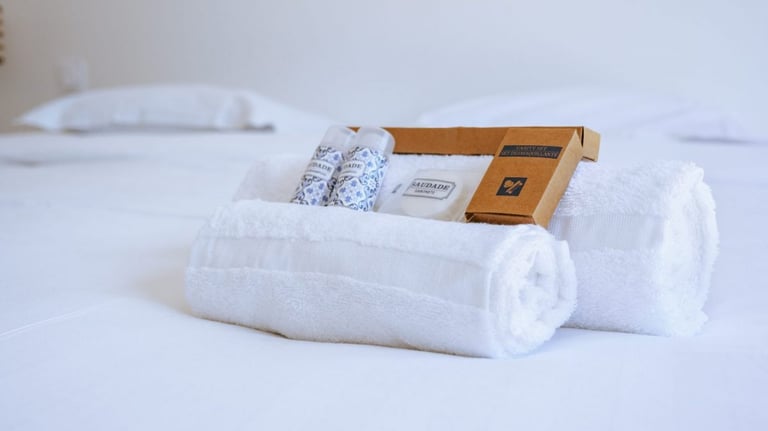 Sur chaque lit double (minis shampooing, gel douche et savonnette).